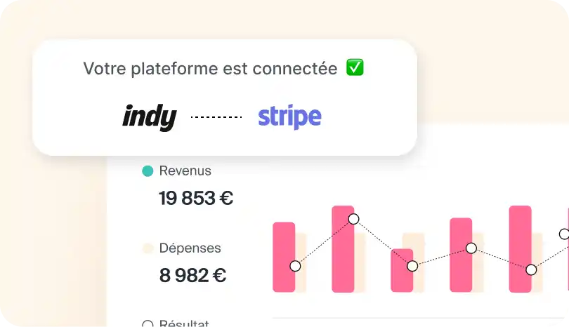 Synchronisez bientôt votre compte Indy avec Stripe, Shopify, Amazon ou encore Paypal.. de quoi suivre les recettes et dépenses de chaque plateforme pour connaitre précisément votre rentabilité.