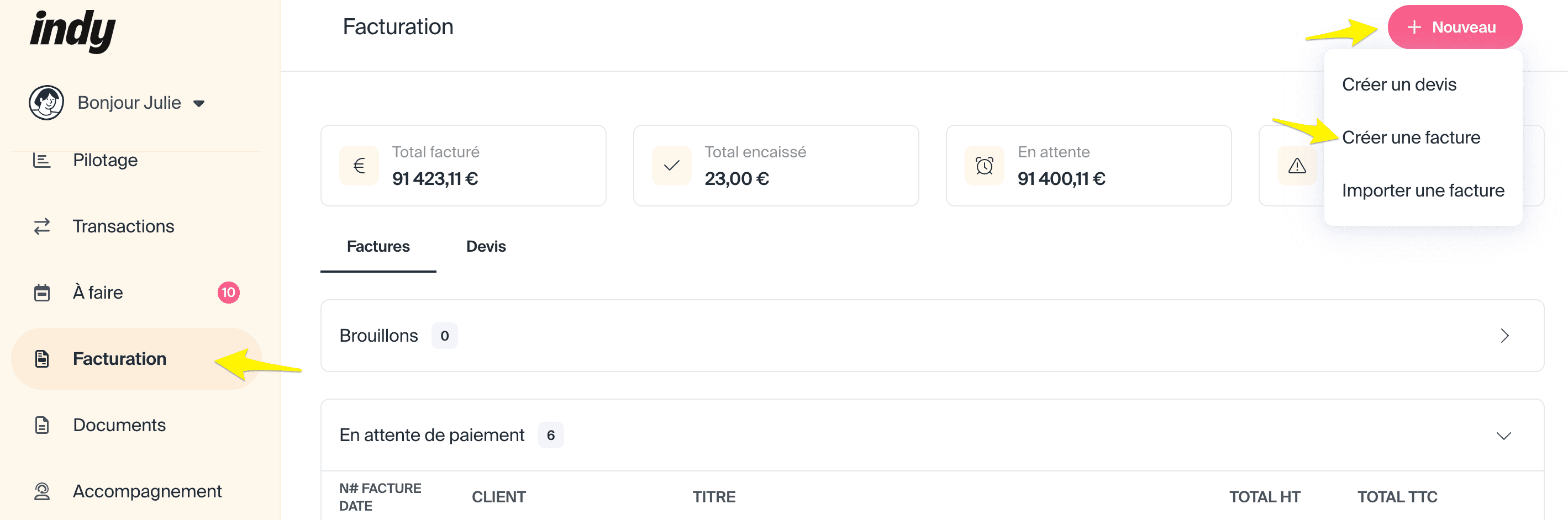 Indy propose un module facturation 100% gratuit et facile d’utilisation. Voici un petit tutoriel de la fonctionnalité 😉