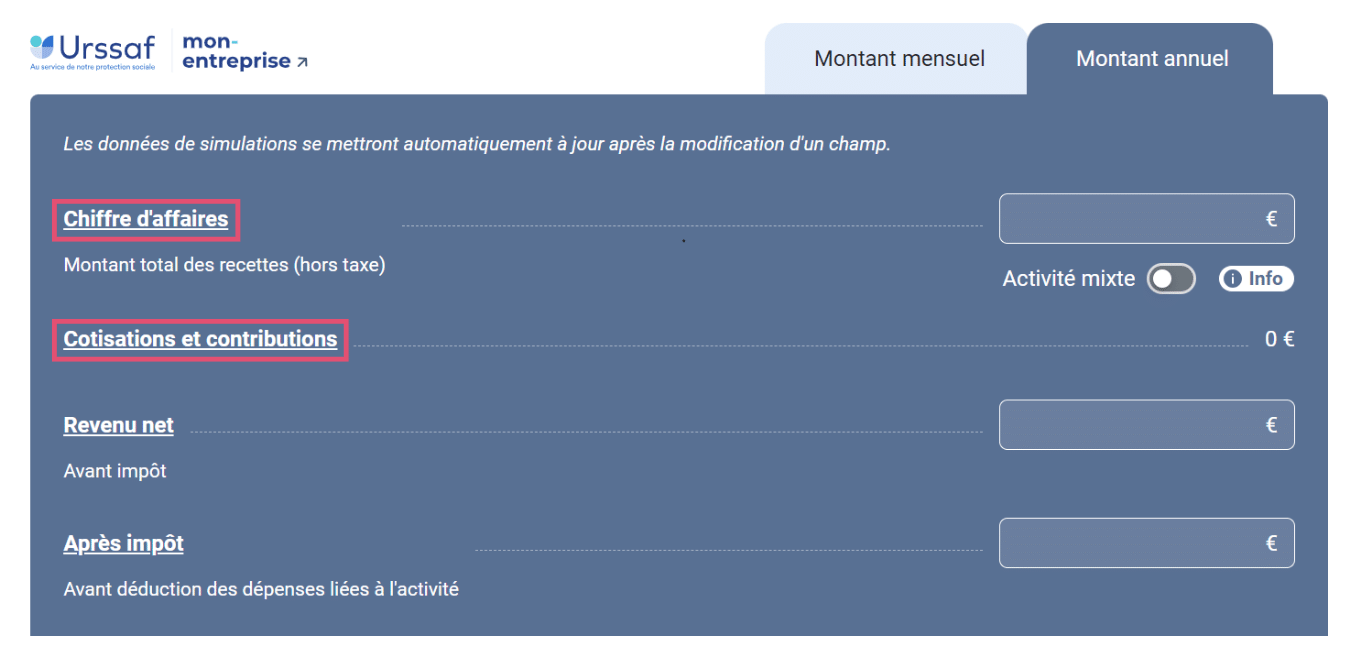 - Pour simplifier ce calcul, nous vous conseillons de vous tourner vers le simulateur de l’URSSAF : il permet d’obtenir en quelques clics seulement une estimation fiable du revenu net, avant ou après impôt, à partir du chiffre d’affaires déclaré.