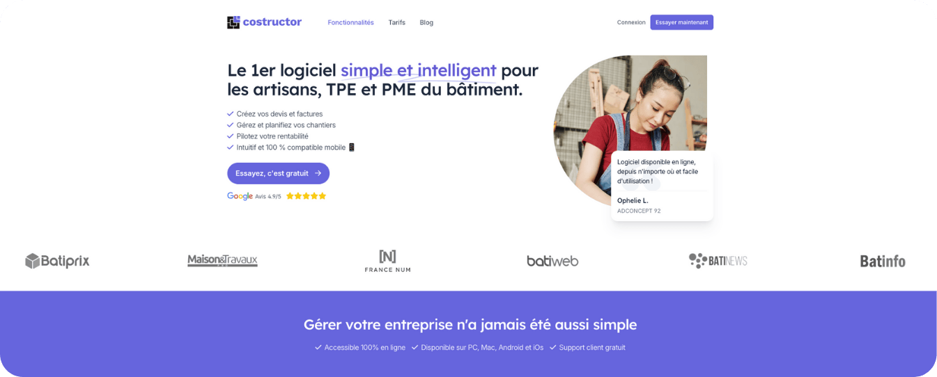 - Costructor est une solution idéale pour gérer vos devis et factures mais aussi vos chantiers ;