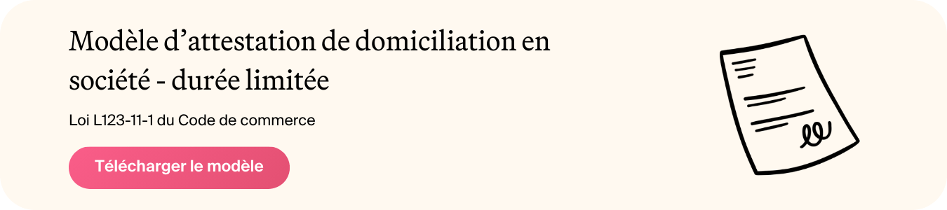 La durée de domiciliation est importante, car elle est encadrée par une loi. Selon la loi L123-11-1 du Code de commerce, si des dispositions contractuelles ou légales vous empêchent de domicilier votre entreprise à votre adresse, la domiciliation n’est valable que pendant 5 ans, pour vous laisser le temps de trouver une solution. Il s’agit donc d’une domiciliation provisoire. Des dispositions interdisant la domiciliation d’une entreprise peuvent se trouver dans votre bail de location, dans les règles de la copropriété ou dans les règles d’urbanisme de la ville. Pensez à vérifier ces documents avant de rédiger votre attestation de domiciliation.
