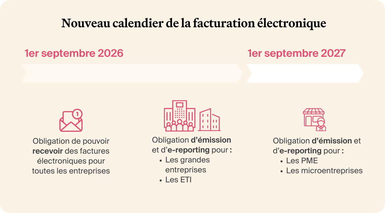 Ce report, bien qu’annoncé, a finalement été annulé ❌. Les dates de 2026 pour les grandes entreprises et ETI, et de 2027 pour les PME et micro-entreprises restent donc valables.