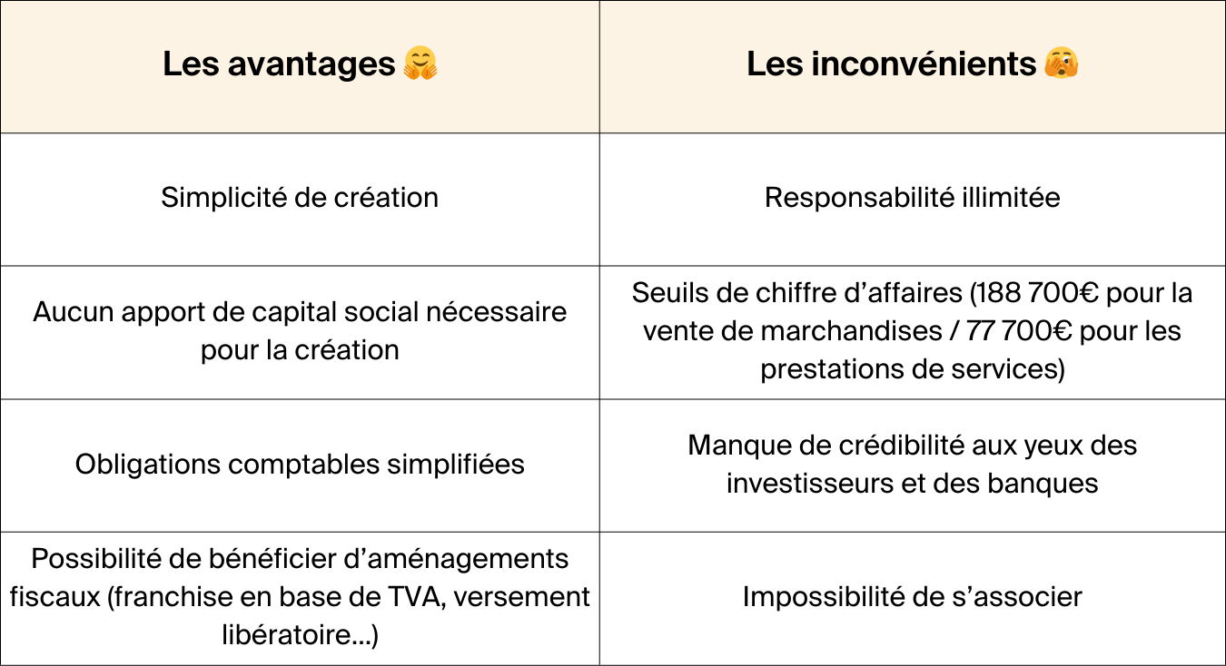 | Formalités de création relativement simples | Impossible de s’associer |