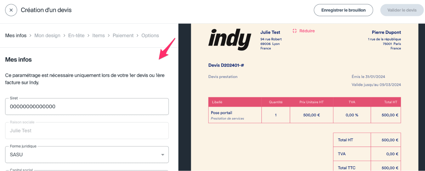 - Avec Indy, créer et personnalisez gratuitement tous vos devis et factures !