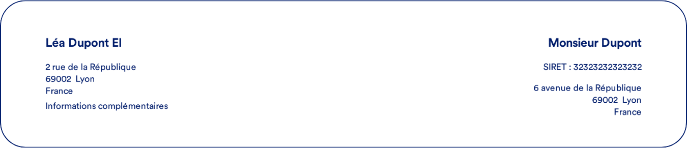 - les coordonnées du client : nom, numéro de SIRET, adresse et informations complémentaires si vous le souhaitez : numéro de téléphone, adresse e-mail…etc.