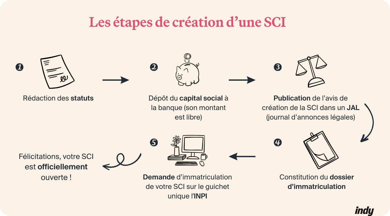 Sur Indy, la création de SCI est offerte ! Rédaction des statuts, accompagnement des démarches, vous êtes guidé à chaque étape 🤩