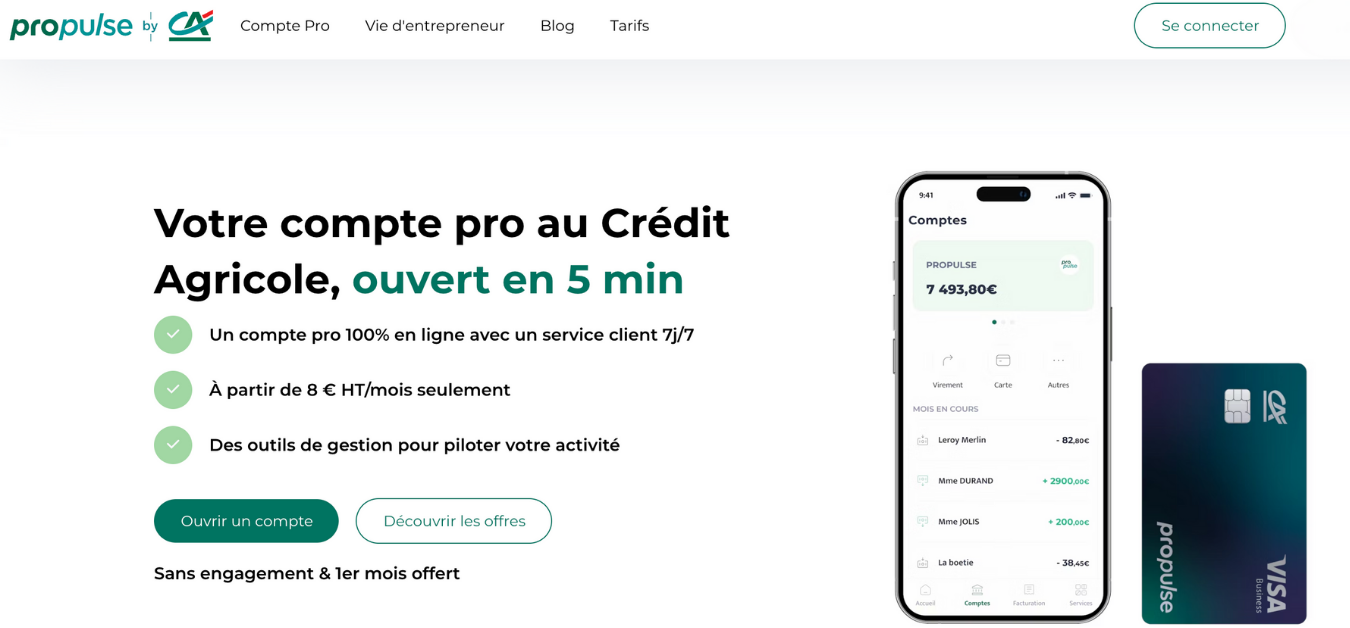 - D’une banque en ligne, telle que Propulse by CA par exemple. Ces établissements 100% digitaux proposeront des services similaires aux banques traditionnelles à quelques exceptions près ;