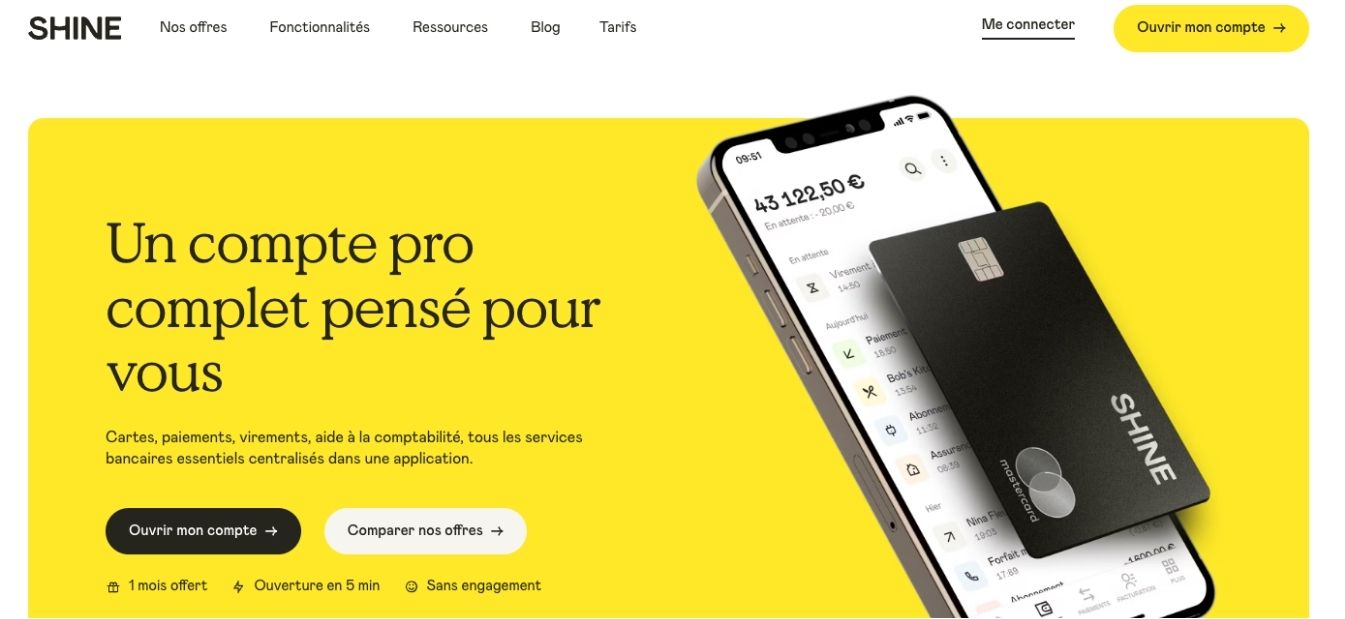 La néobanque française Shine a été créée en 2017. Cette dernière appartient désormais à la Société Générale. Elle propose des offres de comptes pro en ligne à destination des entreprises et notamment des SCI.